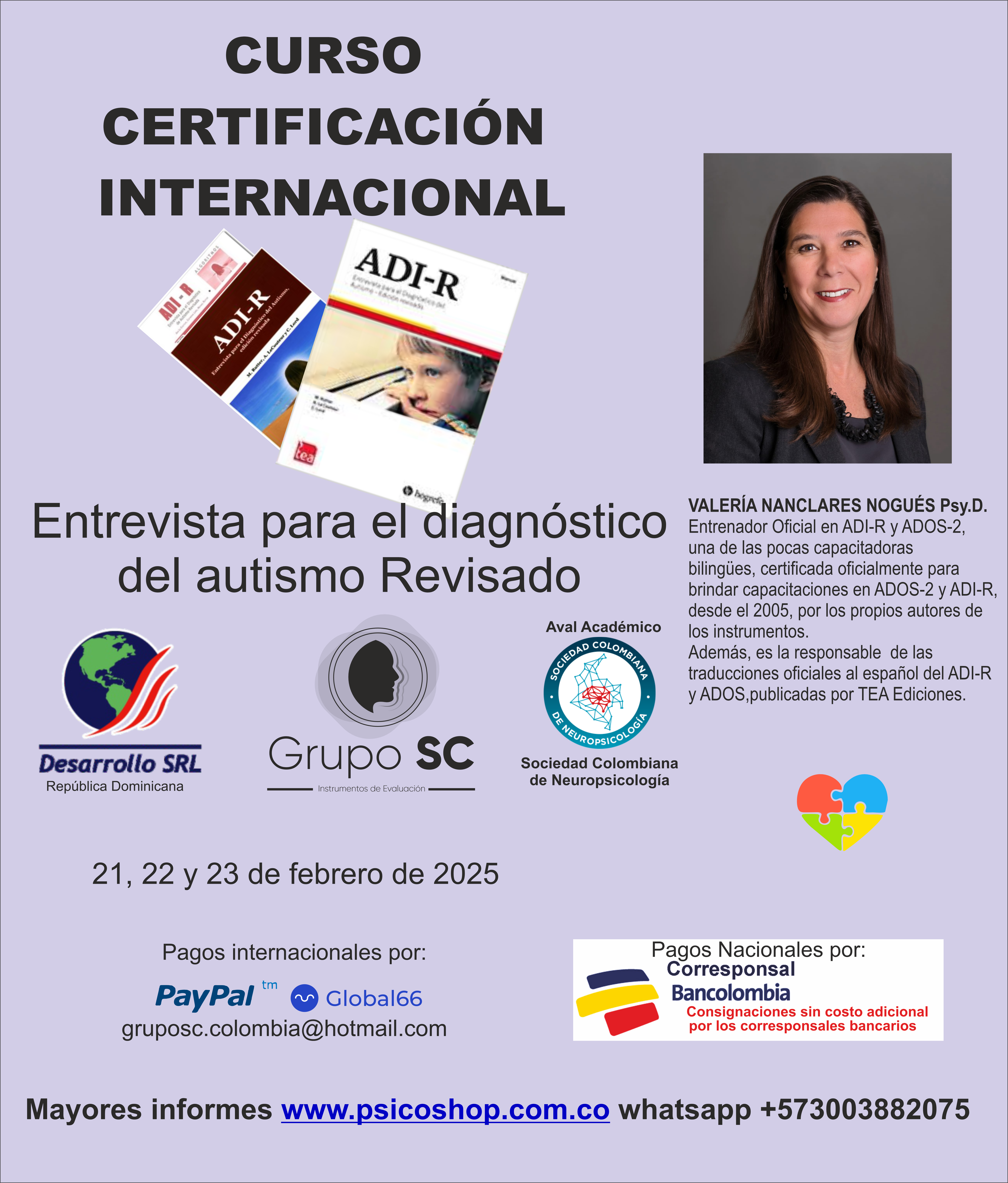 Si estás en Republica Dominicana y deseas adquirir el ADI-R 2 comunícate con Desarrollo SRL ghumana@desarrollord.com WhatsApp 829-292-6898