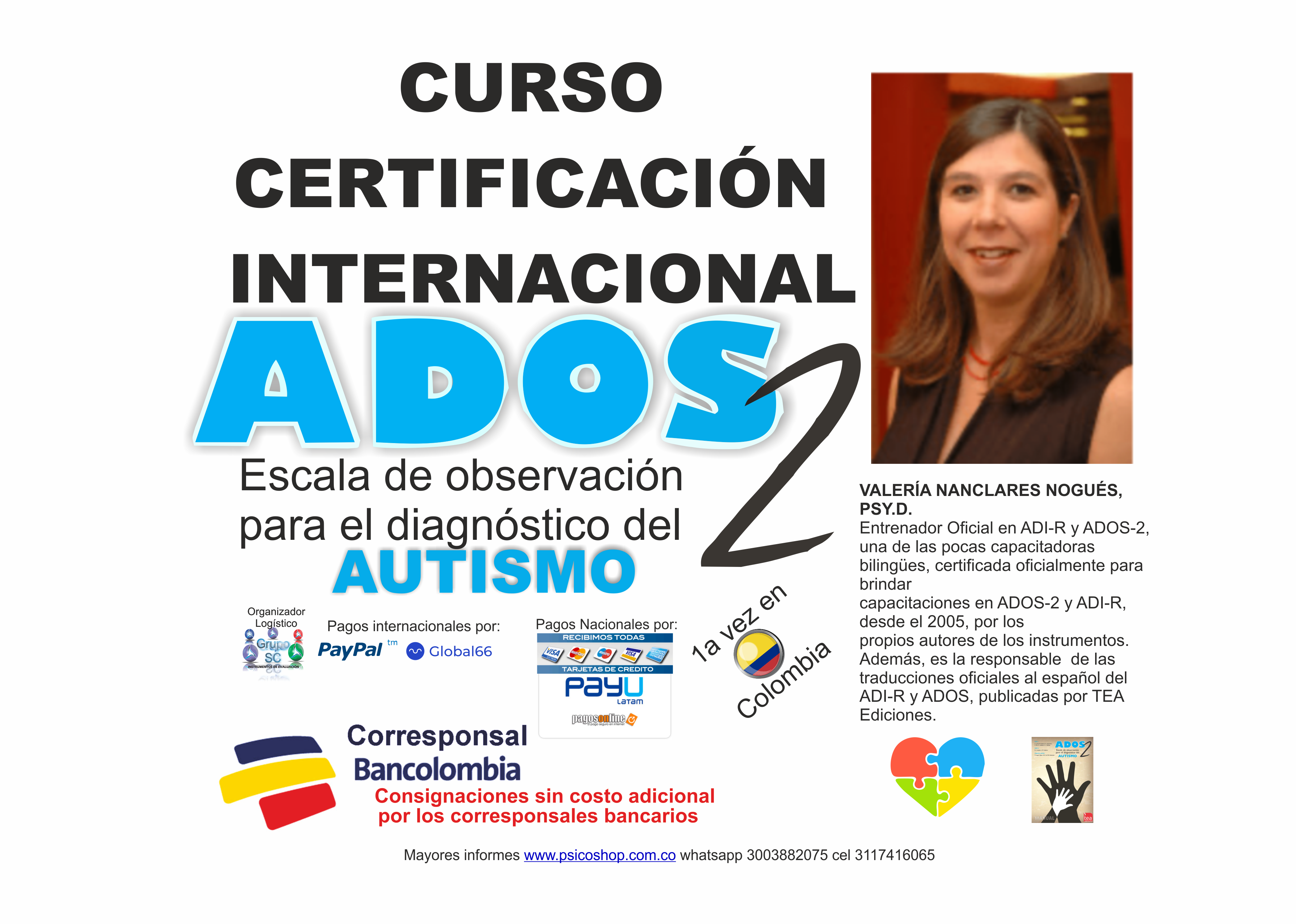 La Escala de Observación para el Diagnóstico de Autismo, segunda edición (ADOS-2 por sus siglas en inglés) es una evaluación semi-estructurada utilizada para el diagnóstico de Trastorno del Espectro Autista (TEA) en niños, adolescentes y adultos. La evaluación consiste en una observación directa de comportamientos socio-comunicativos y comportamientos repetitivos que definen los criterios diagnósticos de TEA, según DSM-5. Dependiendo de la edad y nivel de lenguaje expresivo, se elige uno de 5 módulos para evaluar los comportamientos del individuo. La capacitación clínica del ADOS-2 introduce a los inscritos en el curso a la herramienta, su administración, valoración, validez diagnóstica y su incorporación dentro de la práctica clínica. El curso habilita a los participantes a recibir la certificación oficial para su uso dentro del ámbito clínico.