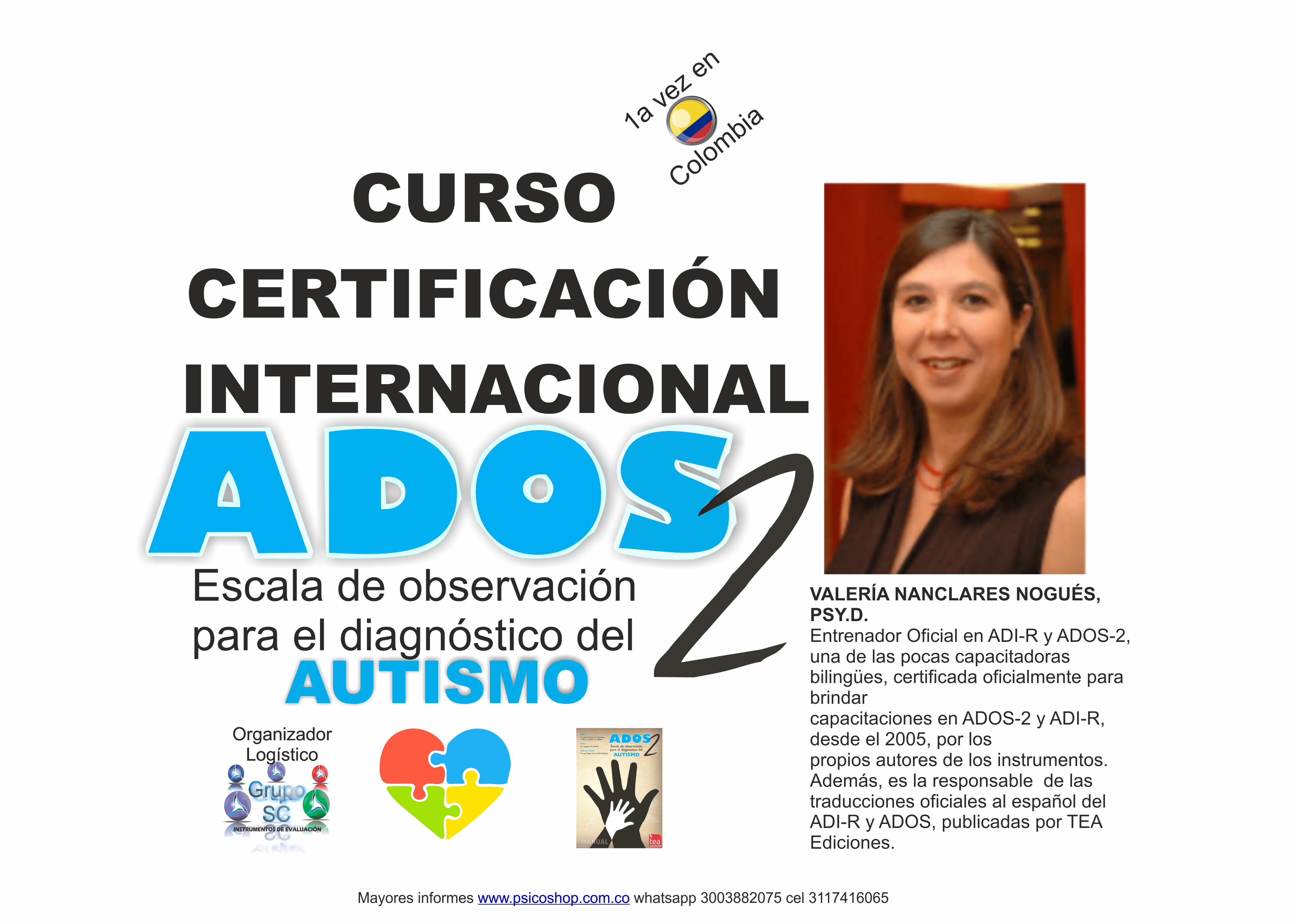 Certificación Oficial y Acreditada a nivel internacional, para el uso clínico del ADOS-2. Certifica la Dra. Valeria Nanclares Nogués. Formadora independiente certificada (ADI / ADOS).